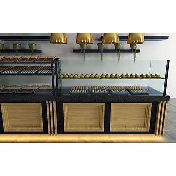 -100/70/145 sulu sistem börek tezgahı - 50/50/85 kasa tezgahı granit zemin - 200/70/145 kuru pasta tezgahı granit ısıtmalı - 200/70/145 baklava tezgahı granit ısıtmalı - zemin komple granit - mobilya çam